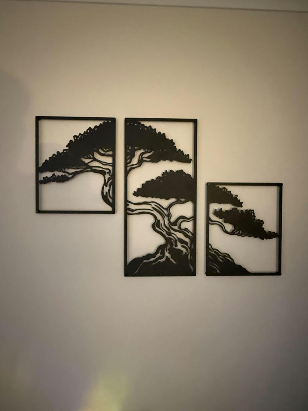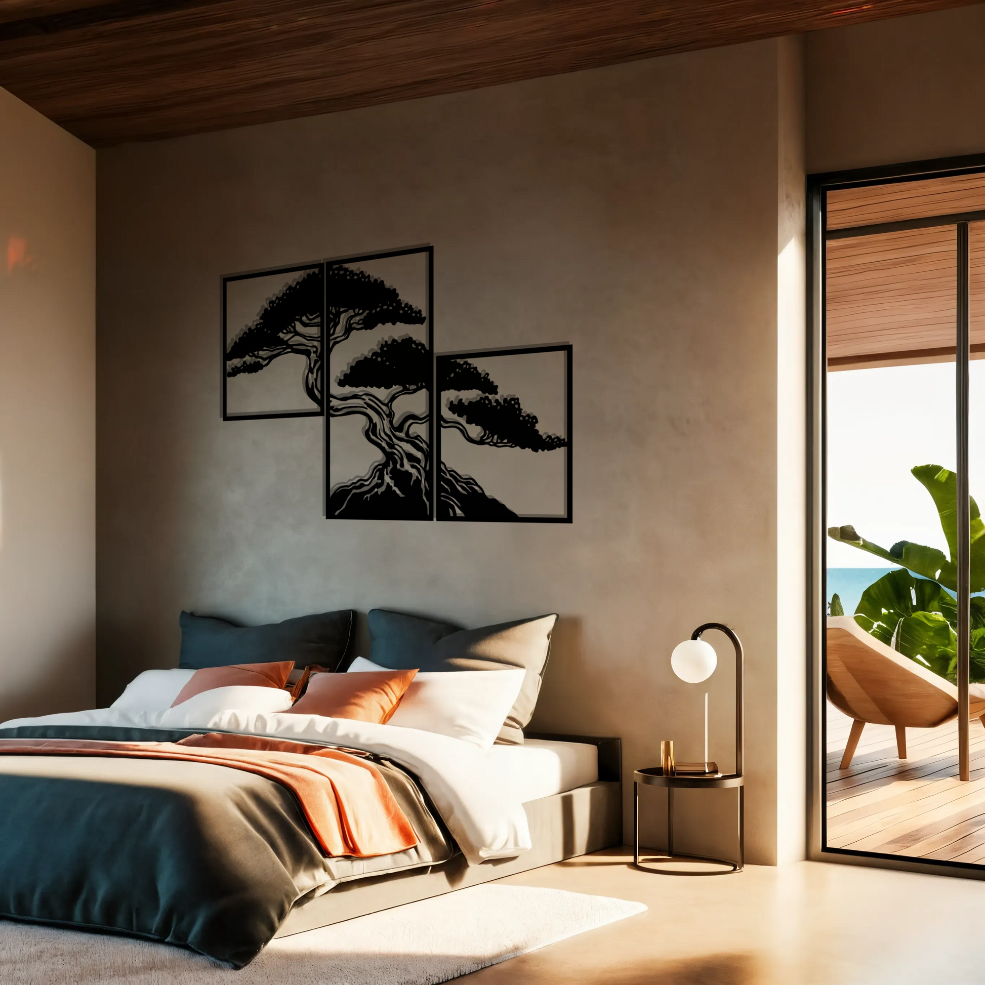 Inspired by the ancient art of bonsai, this stainless steel masterpiece embodies harmony, balance, and the beauty of nature’s resilience. Crafted with intricate detail, the flowing branches and delicate leaves of this three-piece wall art create a mesmerizing display, symbolizing strength, peace, and longevity. Sized as shown in the product image, this stunning fusion of modern craftsmanship and traditional symbolism arrives ready to hang with an included installation manual and mounting hardware—effortlessly transforming any space into a tranquil sanctuary.