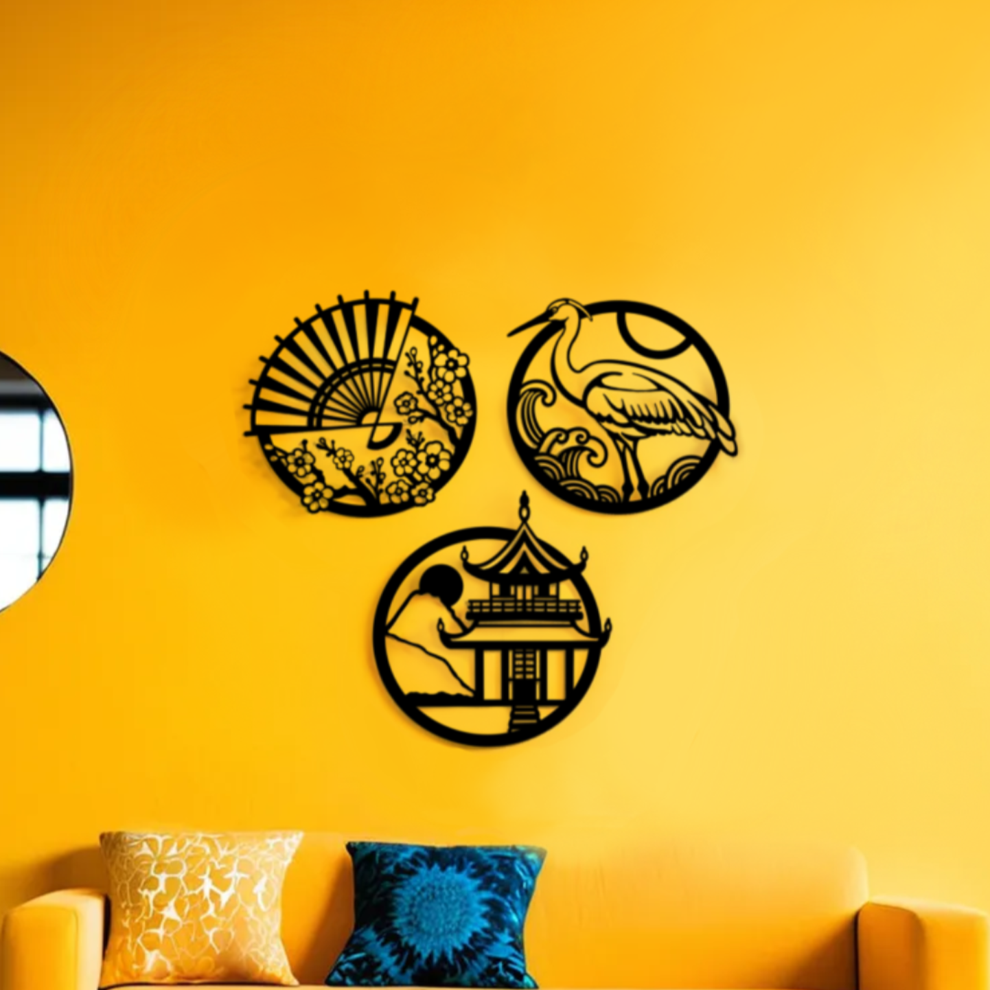 Immerse yourself in serene beauty and timeless elegance with this three-piece stainless steel wall art set. Inspired by Japan’s rich cultural heritage and refined aesthetics, each piece reflects the harmony, simplicity, and artistry of traditional Japanese design. Sized as shown in the product image, this collection arrives ready to hang with an included installation manual and mounting hardware—effortlessly bringing a tribute to tranquility and craftsmanship into your space.